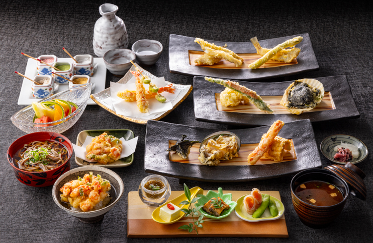 車海老や旬の野菜など、目の前で揚げたての天ぷらをお楽しみいただけます。食のエンターテインメントで、特別なひとときを。
