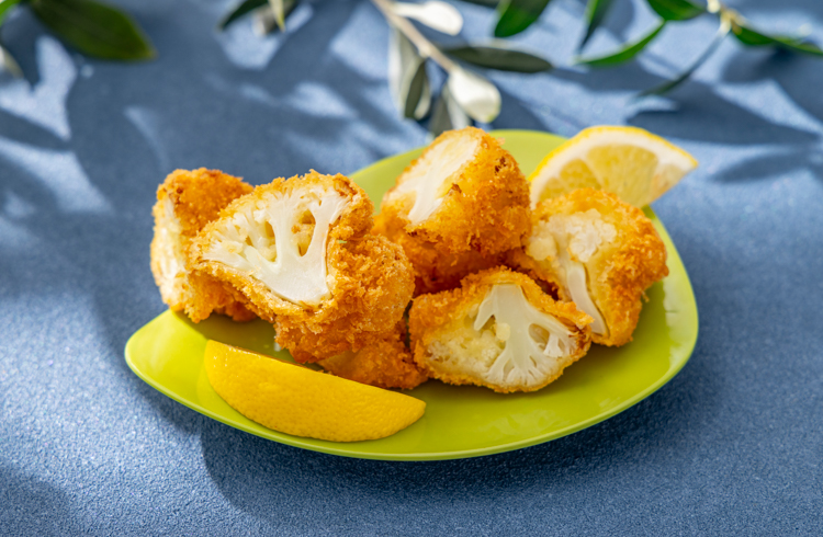 カリフラワーの自然な甘みを引き出し、香ばしい衣で包み込んだ一品。クリーミーなヴィーガンタルタルソースが、軽やかな食感に奥行きを添えます。