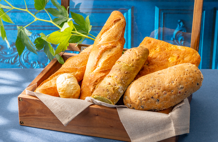 「アンチョビオリーブブリオッシュ」「アップルフォカッチャ」「抹茶かのこブレッド」など、ホテルで毎日焼き上げる香り高いブレッド。