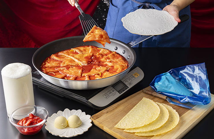 イタリアの伝統料理にスモークパプリカの香りを重ね、クラシックながら新鮮な味わいに仕上げました。柔らかなポークの旨みとスパイスの余韻が、口いっぱいに広がります。