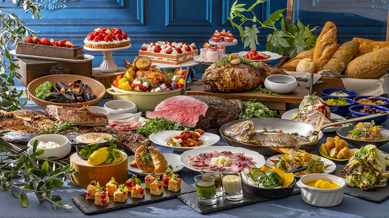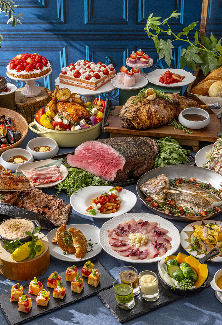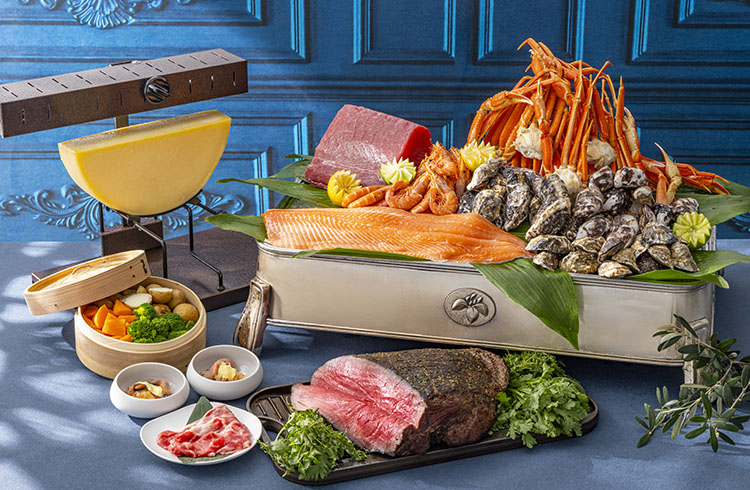 ギリシャ、イタリア、スペインなどの美食を集めたウィンタービュッフェ。魚介の旨みを凝縮したブイヤベース風しゃぶしゃぶや国産牛ロースト、旬の鰤カルパッチョなど、冬にふさわしい贅沢なメニューが並びます。