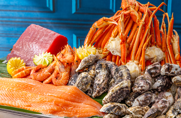 年末年始だけの特別なご馳走。ズワイガニ、マグロ、サーモン、エビの海鮮4種類を食べ放題でご用意。さらに、牡蠣剥き職人(オイスターシャッカ―)によるライブパフォーマンスで目の前で仕上げる新鮮な牡蠣をお一人様3個セットでお楽しみいただけます。