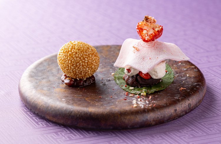 中国料理「王朝」料理長 今井伸が贈る、四季折々の食材を使用した少量多品目のコースです。王朝ならではの味覚を余すことなくご堪能いただける、多彩な逸品を一度に楽しめる贅沢なシグネチャーコース。季節ごとに移ろう趣きとともに、変化する味わいをお楽しみいただけます。