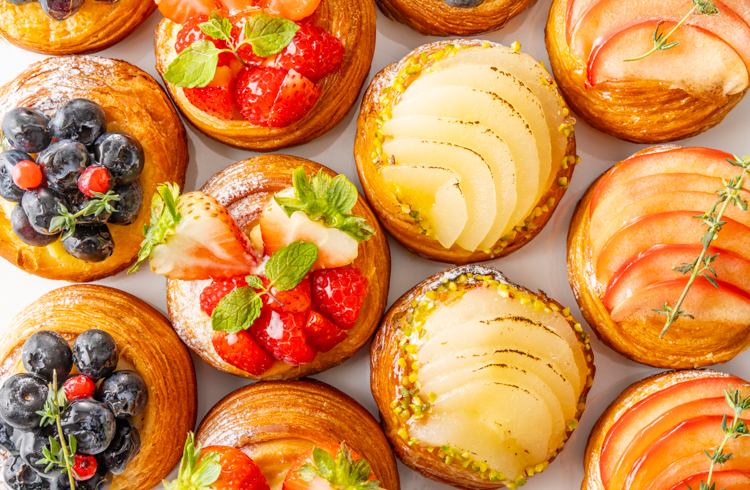 新鮮なフルーツをたっぷり乗せた、華やかで贅沢なデニッシュ。フルーツ本来の香りと甘みが際立つ味わいに仕上げました。